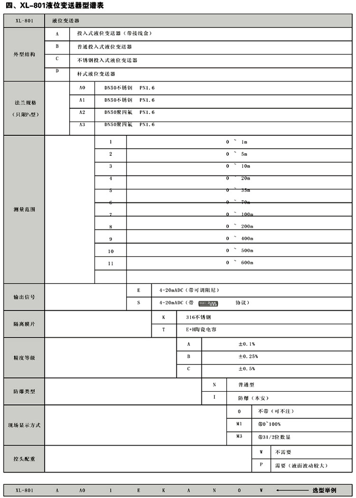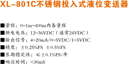 XL-801C不銹鋼投入式液位變送器