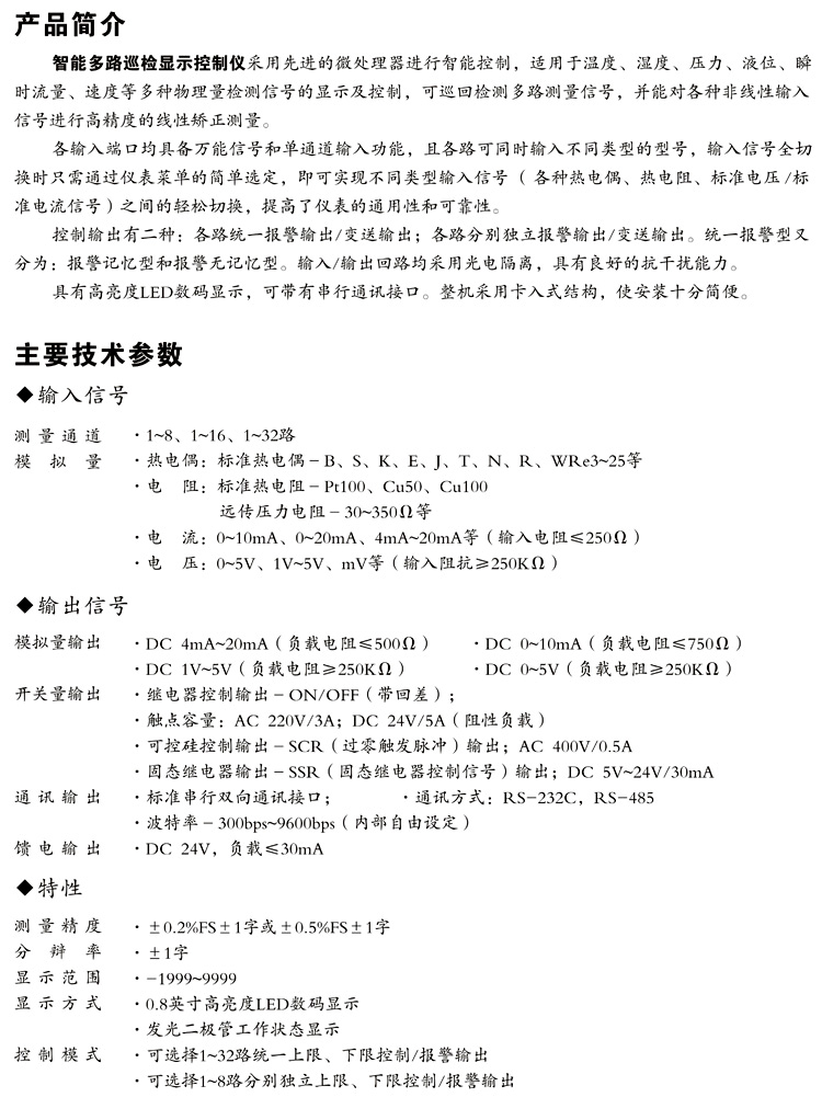 智能多回路巡檢顯示控制儀系列