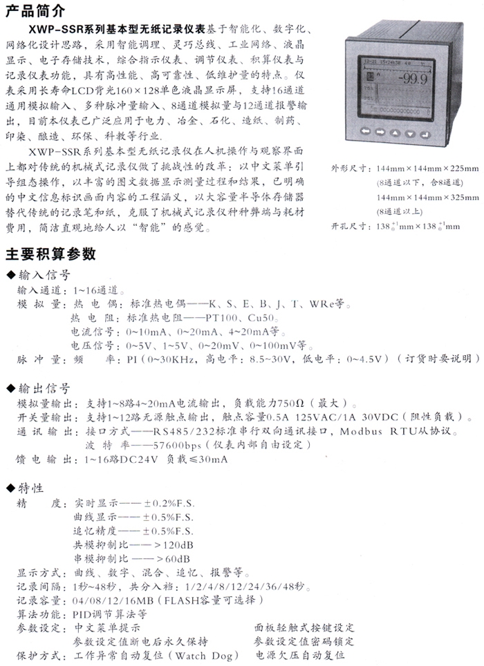 XWP-SSR系列基本型無(wú)紙記錄儀